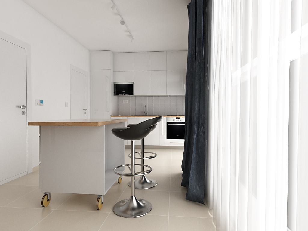 Кухня с подвижен остров 3D визуализация