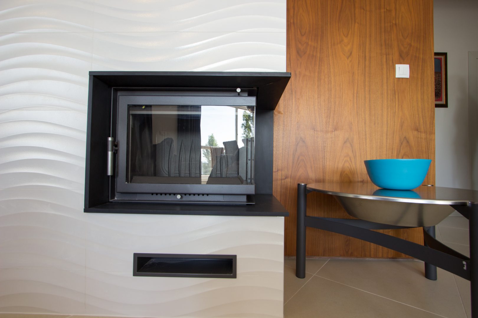 Основна идея на проекта беше да разработим модерно ваканционно убежище за собствениците – младо пътуващо семейство с динамичен начина на живот. Решихме да създаден балансирана и спокойна атмосфера, предоставяща комфорт и възможност за почивка. За да оформим пространство за умствена и физическа релаксация подбрахме земни пясъчни тонове за подовите настилки, а за акцент на някои стени предпочетохме стенни облицовки от дърво. Смесихме всичко това с натурални текстури и изчистени линии – бежово, бяло, светло кафеви цветове, гланцови повърхности и хромирани детайли. За мокрите помещения избрахме оловно син цвят в комбинация с магма и графит. Ключови материали, които използвахме са естествен дъб и ироко, фурнирован МДФ, хром. Оборудвахме дневната с камина, за да засилим усещането за спокойствие, топлина и уют.