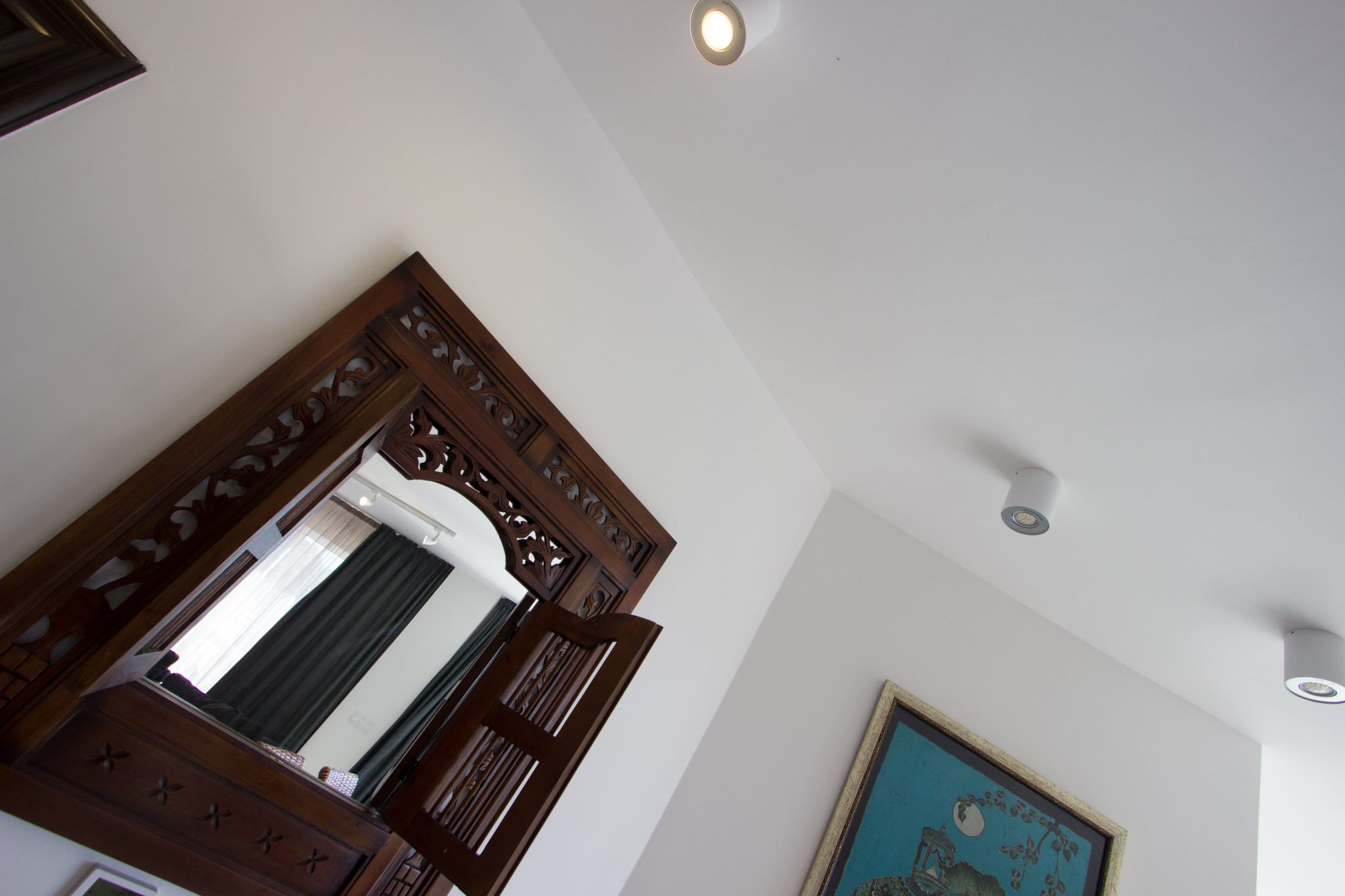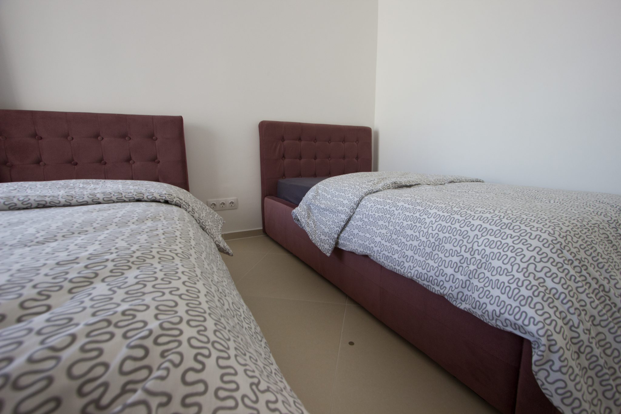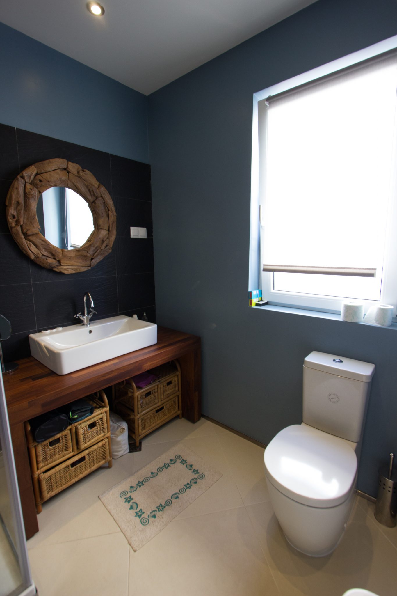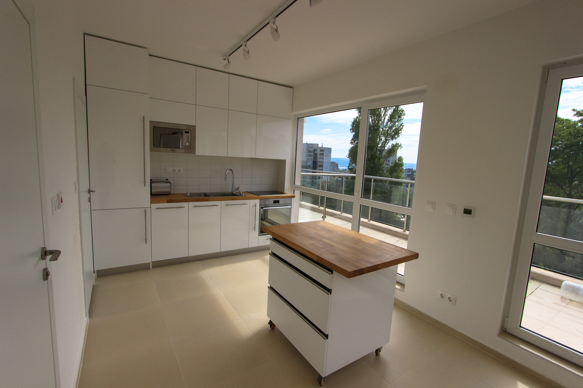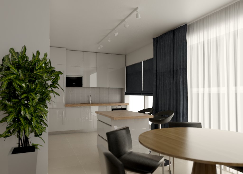 Main idea of the project was to develop modern vacation retreat for the homeowners – a young family of travelers. We decided to create balanced and peaceful atmosphere serving comfort and relaxation. To provide mind and physical relief we have chosen the earthy tones of the sand as a concept for the floor coverings mixed with wood accents as wall paneling. Аll this blended in natural textures, clear lines and simplicity – beige, white, light brown tones, high gloss mirrored surfaces, chrome metal details; natural wood, steel blue color, graphite and magma stone as finishes of bathrooms and toilets. The key materials included in the scope of the project are oak and iroko wood, veneered MDF american walnut, chrome and stainless steel. We equipped the living area with wonderful fireplace thus emphasized peacefulness and warmth.
